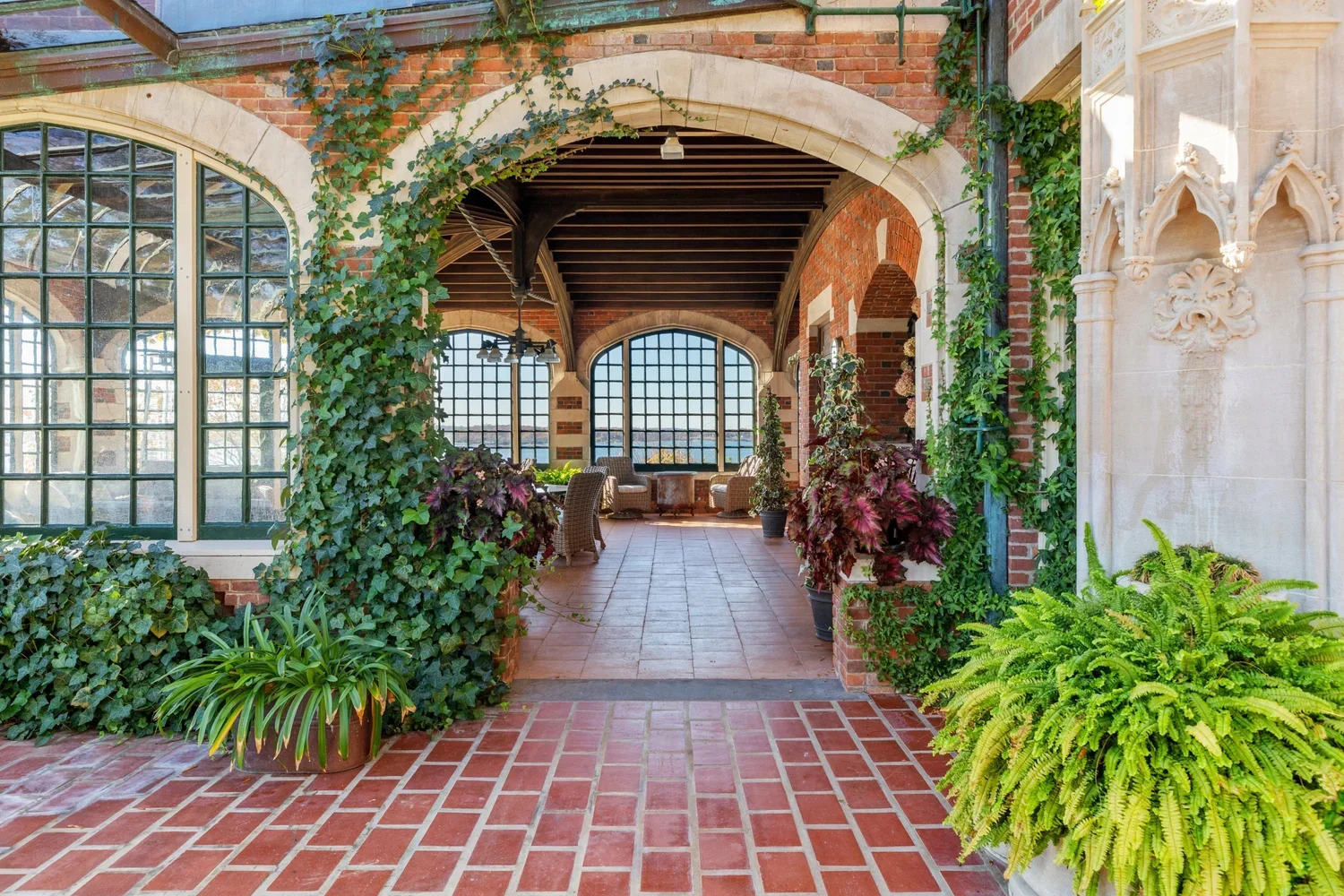 This extraordinary brick manor encompasses 28,000 square feet of exquisitely finished interiors. With 13 bedrooms, 10 full baths, and four half baths, every space is designed for both comfort and grandeur, balancing light-filled rooms with intimate corners of quiet reflection. Seven fireplaces, intricate millwork, vaulted ceilings, and curated architectural details throughout whisper a timeless elegance that complements modern living.